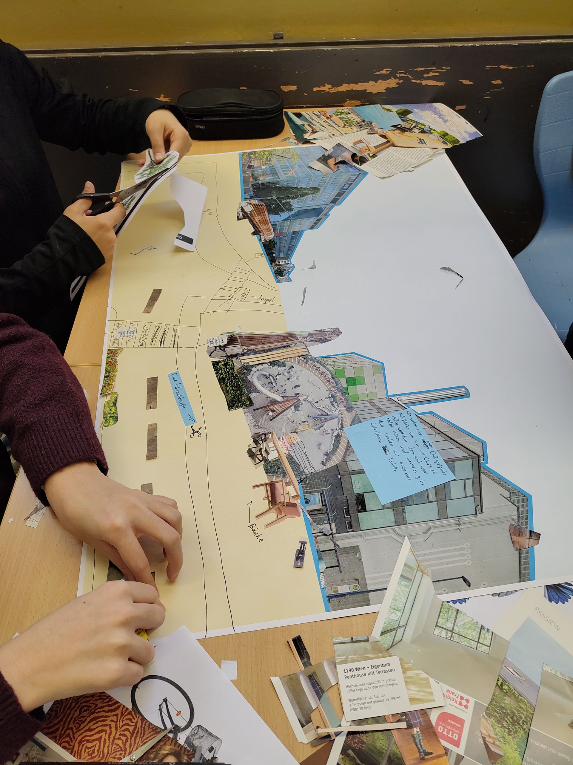 Der Tag startete mit einem Besuch in der angrenzenden Schillerschule: Gemeinsam mit Schüler:innen wurden kreative Fotocollagen zur Zukunft des Goetherings gestaltet. Parallel dazu fand ein Gespräch mit Vertreter:innen des Seniorenrats statt, um die Bedürfnisse dieser Altersgruppe gezielt einzubeziehen.