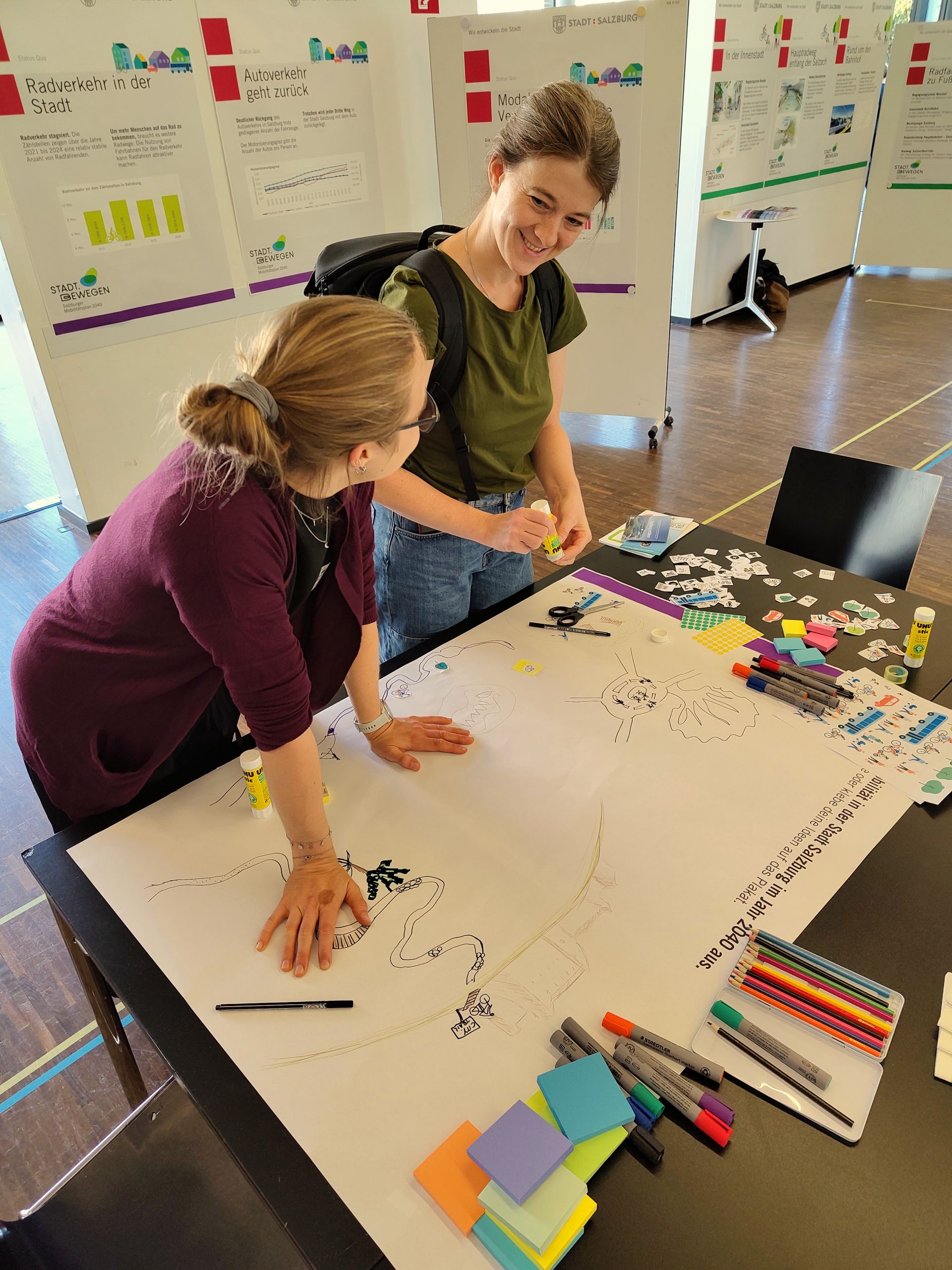 Bereits am nächsten Tag präsentierten wir den Plan beim Salzburger Mobilitätstag einer breiten Öffentlichkeit. Neben spannenden Einblicken in die Inhalte des Plans konnten Besucher:innen an mehreren Ständen verschiedenste Mobilitätsformen kennenlernen – vom Transportfahrrad bis hin zum brandneuen E-Bus von Albus.