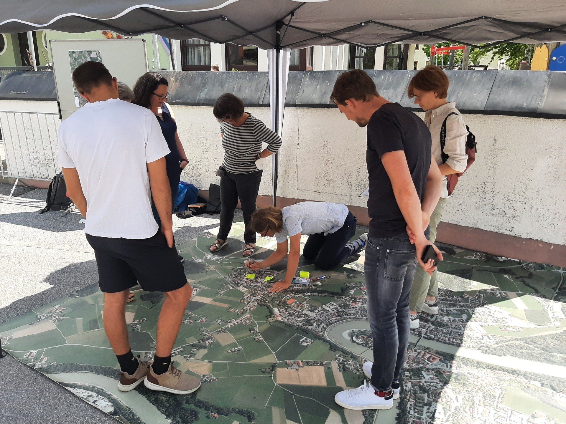 Bereits vorab waren Schüler:innen und Bewohner:nnen eingeladen, Orte zum Wohlfühlen und Gefahrenstellen aufzuzeigen und Ideen einzubringen. Bei der Fußgänger:innen-Werkstatt fanden Begehungen mit sechs Fokusgruppen sowie intensive Dialoge mit Bürger:innen in beiden Stadtteilen statt. Ein besonderes Augenmerk lag auf den Bedürfnissen von Schüler:innen, Menschen mit Einschränkungen, Senior:innen und Wirtschaftstreibenden gesprochen. Insgesamt waren mehr als 10 Prozent der gesamten Bevölkerung Oberndorfs in den Dialog eingebunden.
