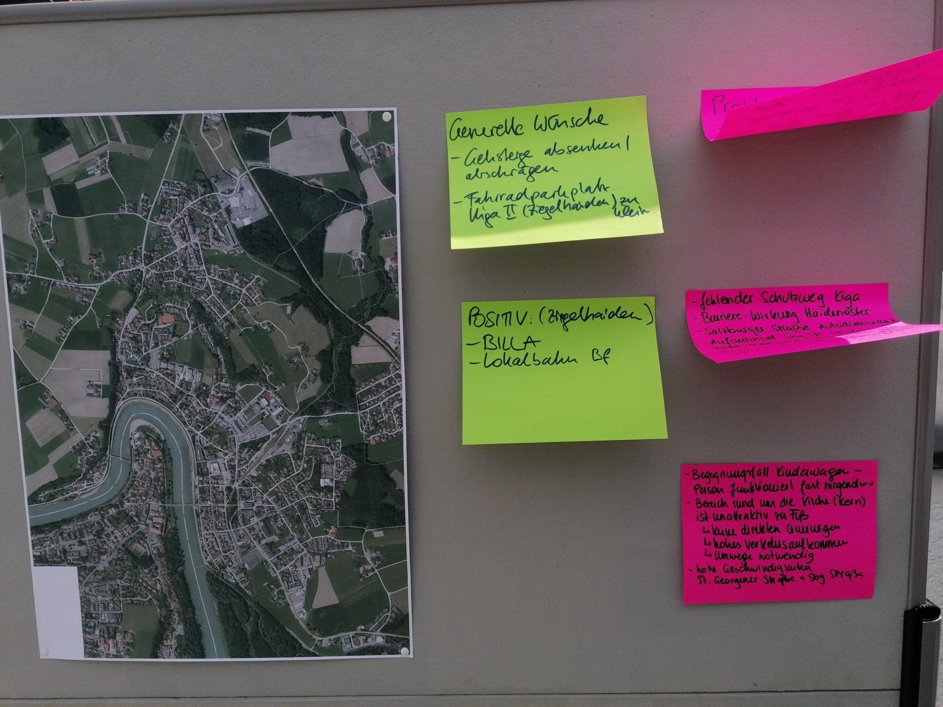 Auch inhaltlich war die Fußgänger:innen-Werkstatt ein großer Erfolg. Es wurde eine Vielzahl von Lösungsansätzen und Verbesserungsvorschlägen entwickelt, die in weiterer Folge auf ihre Umsetzbarkeit hin geprüft werden. Ein Großteil der Maßnahmenvorschläge betrifft die Hauptstraßen in Oberndorf – insbesondere an den Kreuzungen und Querungen soll die Verkehrssicherheit verbessert und der Komfort für das Zu-Fuß-Gehen erhöht werden.