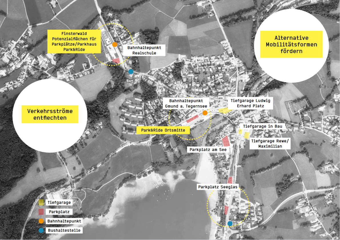 Das Bahnhofsareal von Gmund am Tegernsee in Bayern wird neu geordnet. Die Bahnhofsumgebung soll aufgewertet und verkehrlich neu organisiert werden. Neue Nutzungen sollen rund um den Bahnhof Platz finden. Die Aufenthaltsqualität und die fußläufigen Beziehungen ins Zentrum sollen verbessert werden. Im ersten Schritt dieses Prozesses war es der Gemeinde wichtig, ihre Bürger:innen umfassend miteinzubeziehen.