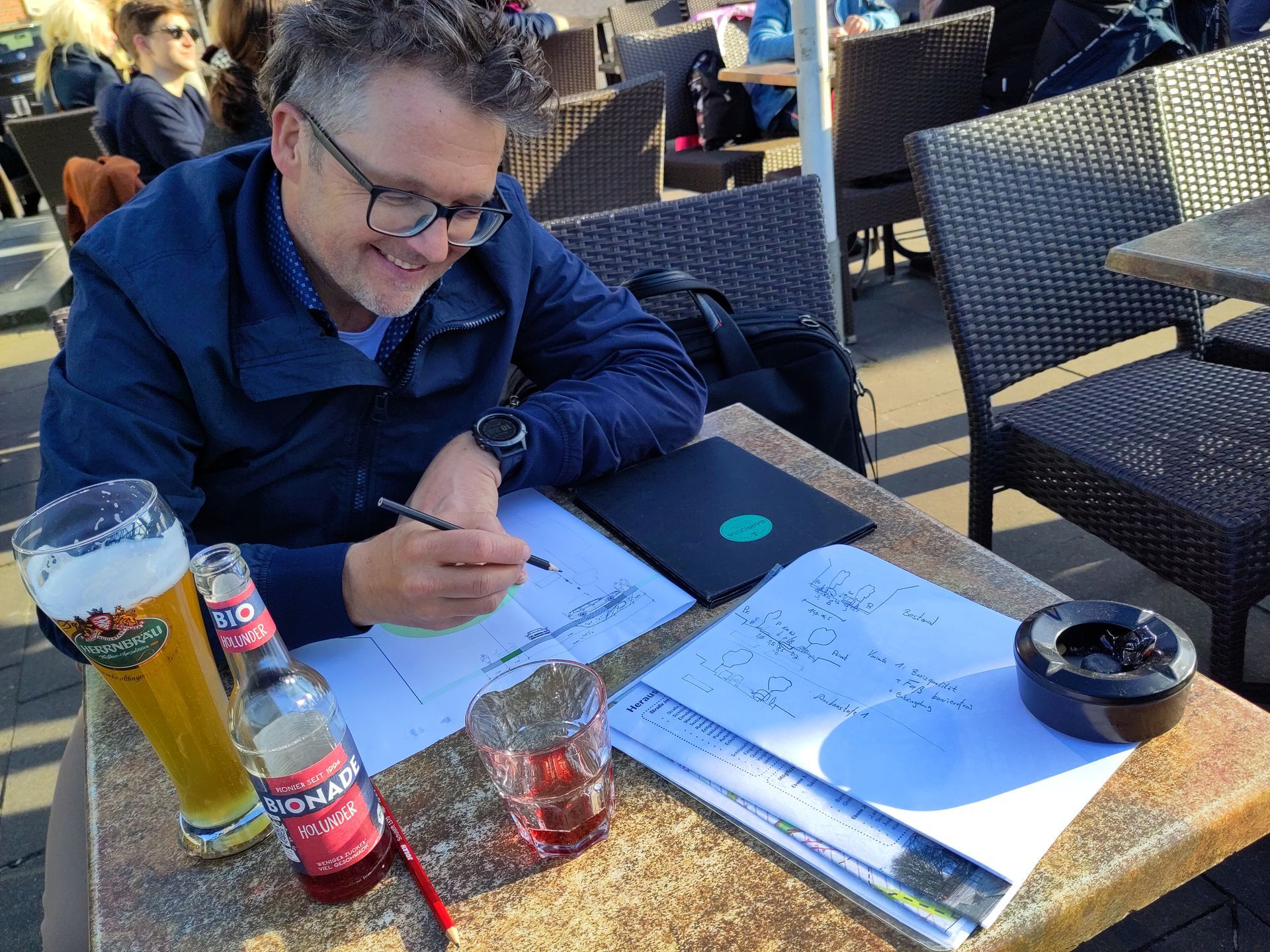 Am 3.5. war Kick Off. Robert Luger und Florian Kratochwil hatten einen wundervollen Tag in Hamburg; mit Ortsaugenschein, Austausch mit den Auftraggeber:innen sowie den anderen Büros, Fischbrötchen sowie Besichtigung der Elbphilharmonie. Unsere vielen Ideen konnten wir gleich beim Abendessen sowie der Zugfahrt retour festhalten.