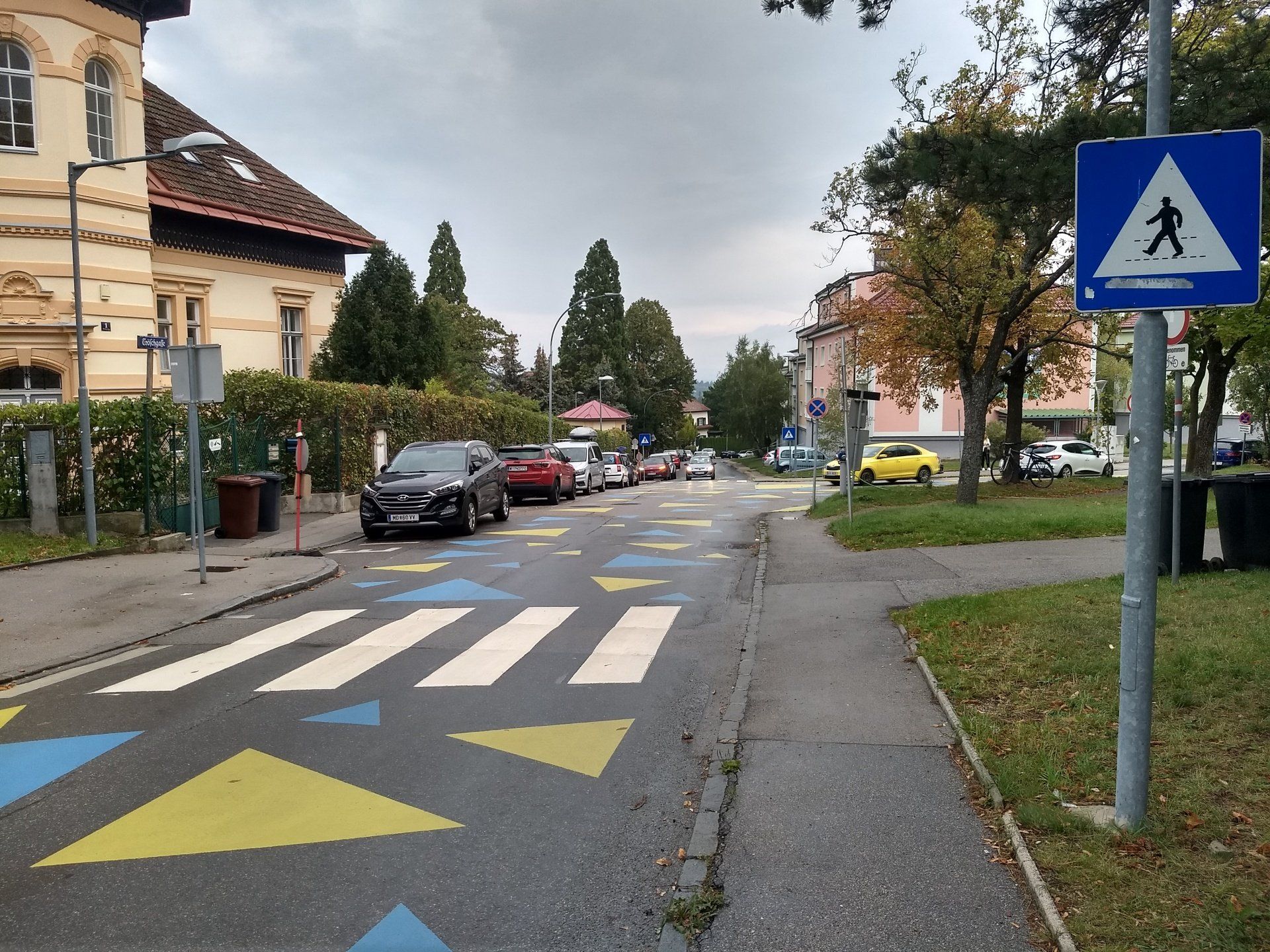 Die Radland GmbH, eine Tochtergesellschaft des Landes Niederösterreich hat das Kuratorium für Verkehrssicherheit (KFV) und con.sens mobilitätsdesign mit der Umsetzung und wissenschaftlichen Begleitung eines Pilotversuches zu bunten Bodenmarkierungen im Straßenraum beauftragt. Als Pilotstandorte wurden zwei Örtlichkeiten in Perchtoldsdorf ausgewählt. Die Maßnahme ist eingebettet in eine große Kampagne zur Erhöhung der Verkehrssicherheit von Schulkindern in ganz Niederösterreich: „Schenk mir einen Augenblick“. In mehreren Gemeinden werden im Zuge dessen Maßnahmen zur Erhöhung der Aufmerksamkeit von Fahrzeuglenker:innen umgesetzt.