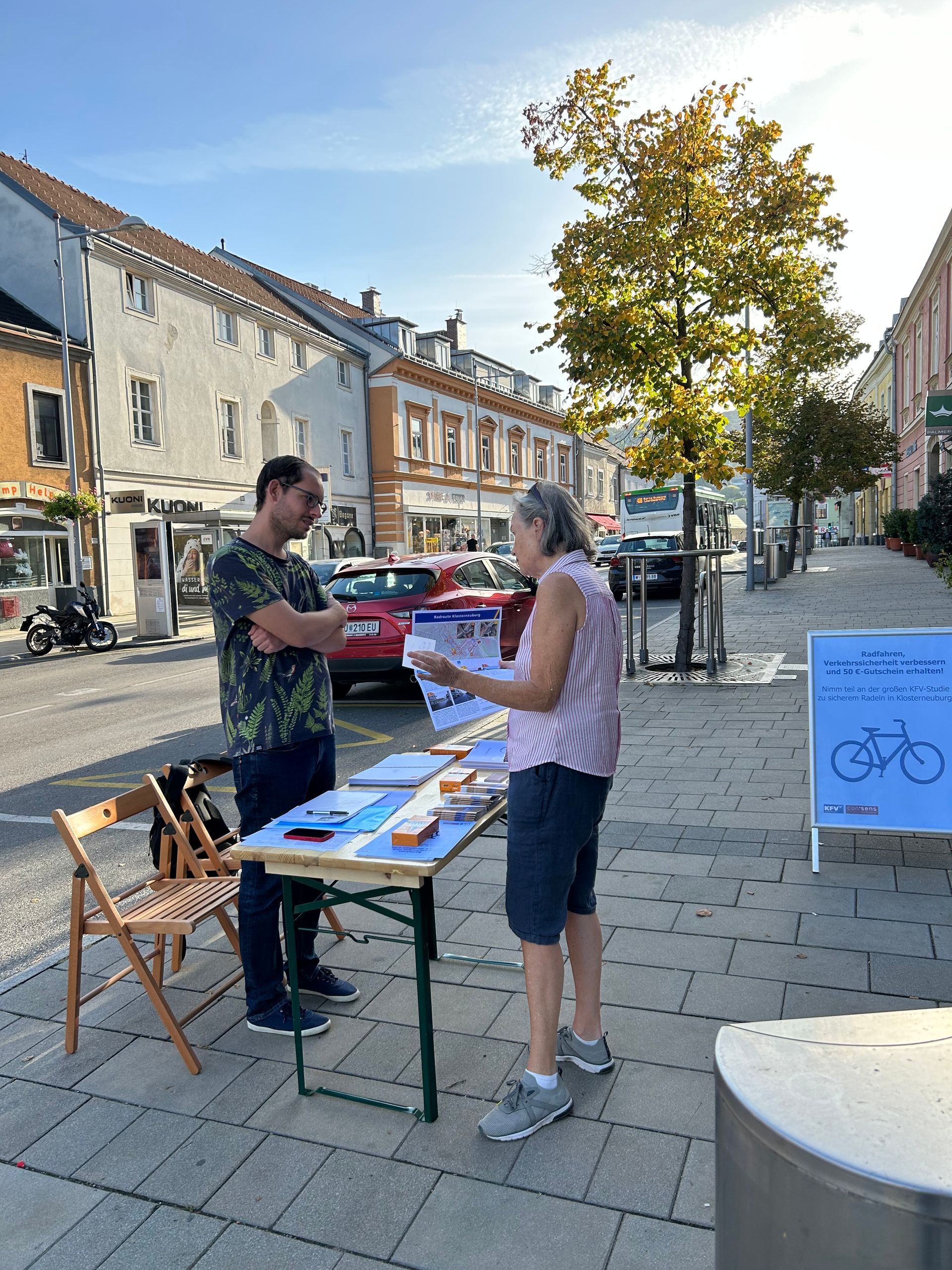 Bei Interesse sind die beiden auch am 18.10.2023 zwischen 15.30 - 18.00 Uhr wieder am Stadtplatz 8 anzutreffen. Kommt vorbei und helft mit, die Verkehrssicherheit in Klosterneuburg zu verbessern!