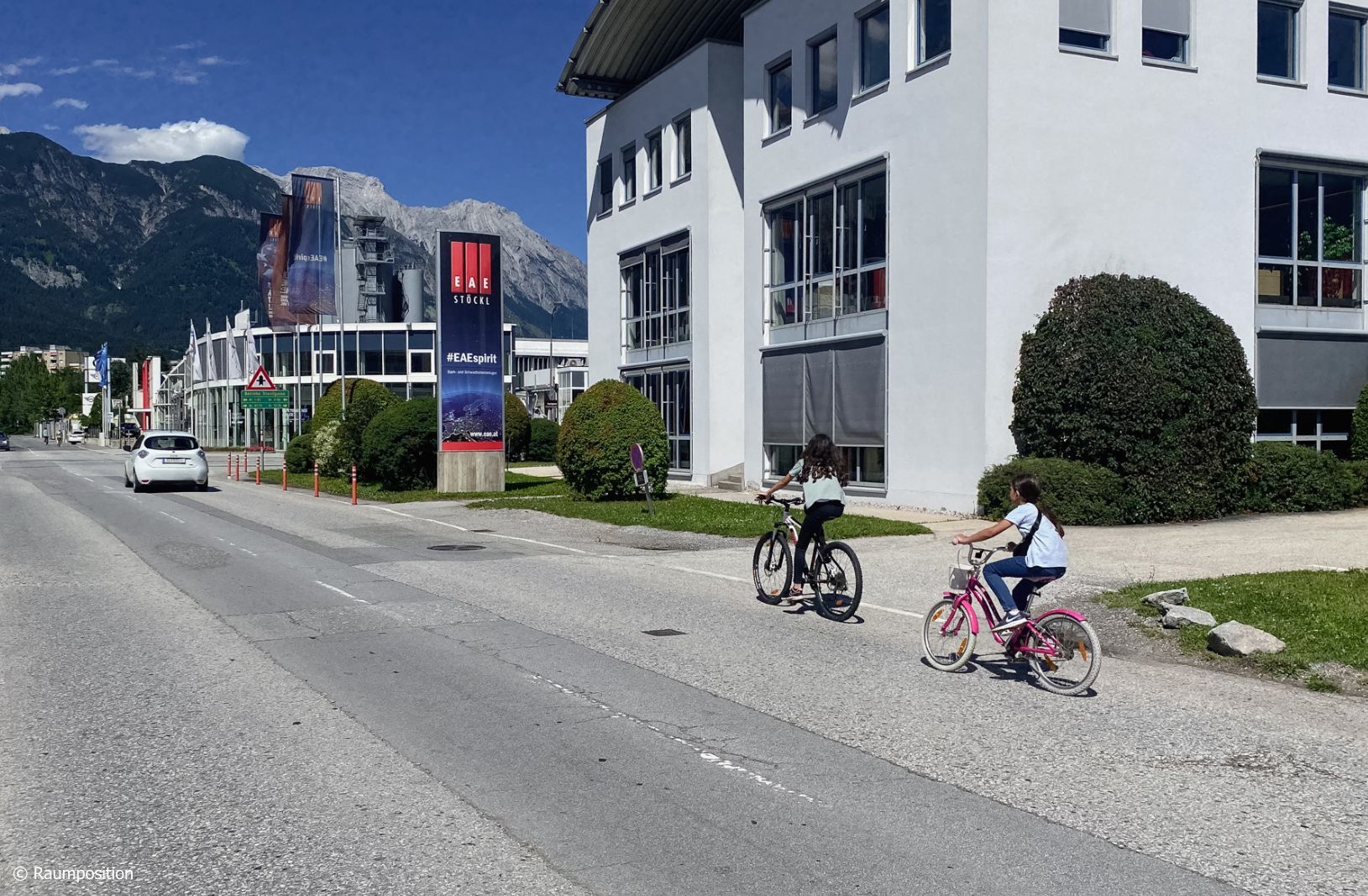 Der Prozess wurde begleitet von einem interdisziplinären Team aus Raumposition, Emrich Consulting und con.sens mobilitätsdesign. Unternehmer*innen und Beschäftigte vor Ort wurden durch Befragungen und Workshops intensiv in die Entwicklung des Konzepts eingebunden. Ebenso waren die Fachdienststellen der Stadt Innsbruck und die Innsbrucker Verkehrsbetriebe in die Erarbeitung involviert.