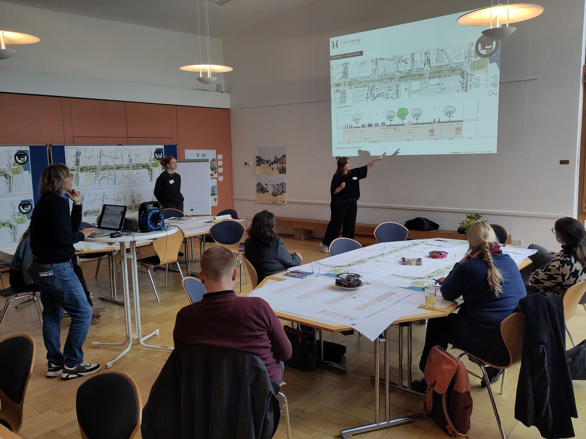 Die erste Phase umfasste Stadtspaziergänge, bei denen Anwohner:innen Schwächen und Qualitäten des bestehenden Straßenraums einbringen konnten. Ergänzend wurden Wünsche und Ideen für die zukünftige Gestaltung gesammelt. Für Geschäftstreibende gab es einen eigenen Termin, um ihre spezifischen Anforderungen frühzeitig zu berücksichtigen. Zusätzlich wurden Vertreter:innen des Kinder- und Jugendparlaments eingebunden.