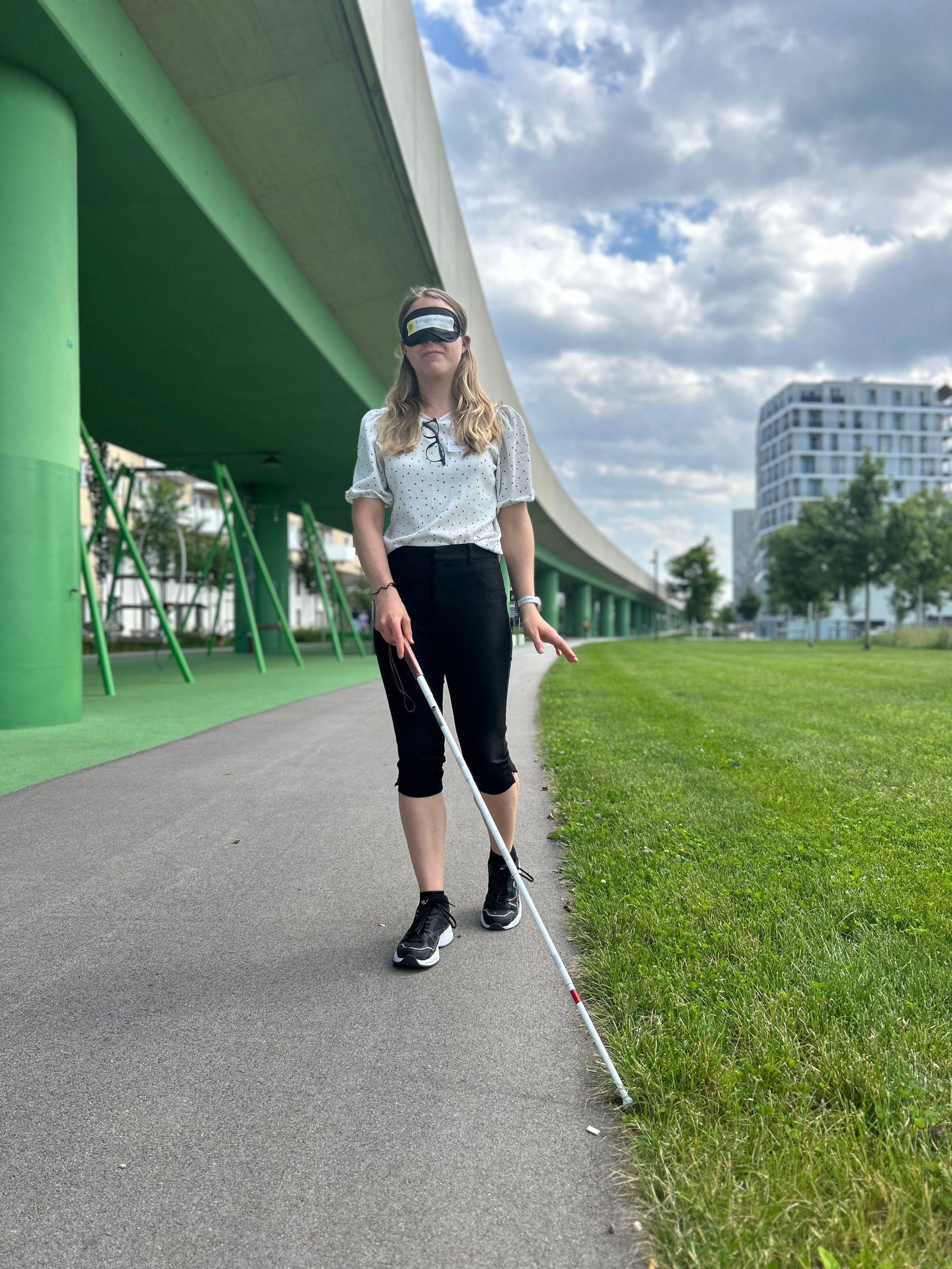 Besonders eindrucksvoll war der “Blind Walk”, bei dem wir uns mithilfe von Langstöcken und anderen assistierenden Technologien ohne Sehsinn orientierten. In diesem Moment gewannen der Tast- und Hörsinn plötzlich an Bedeutung.