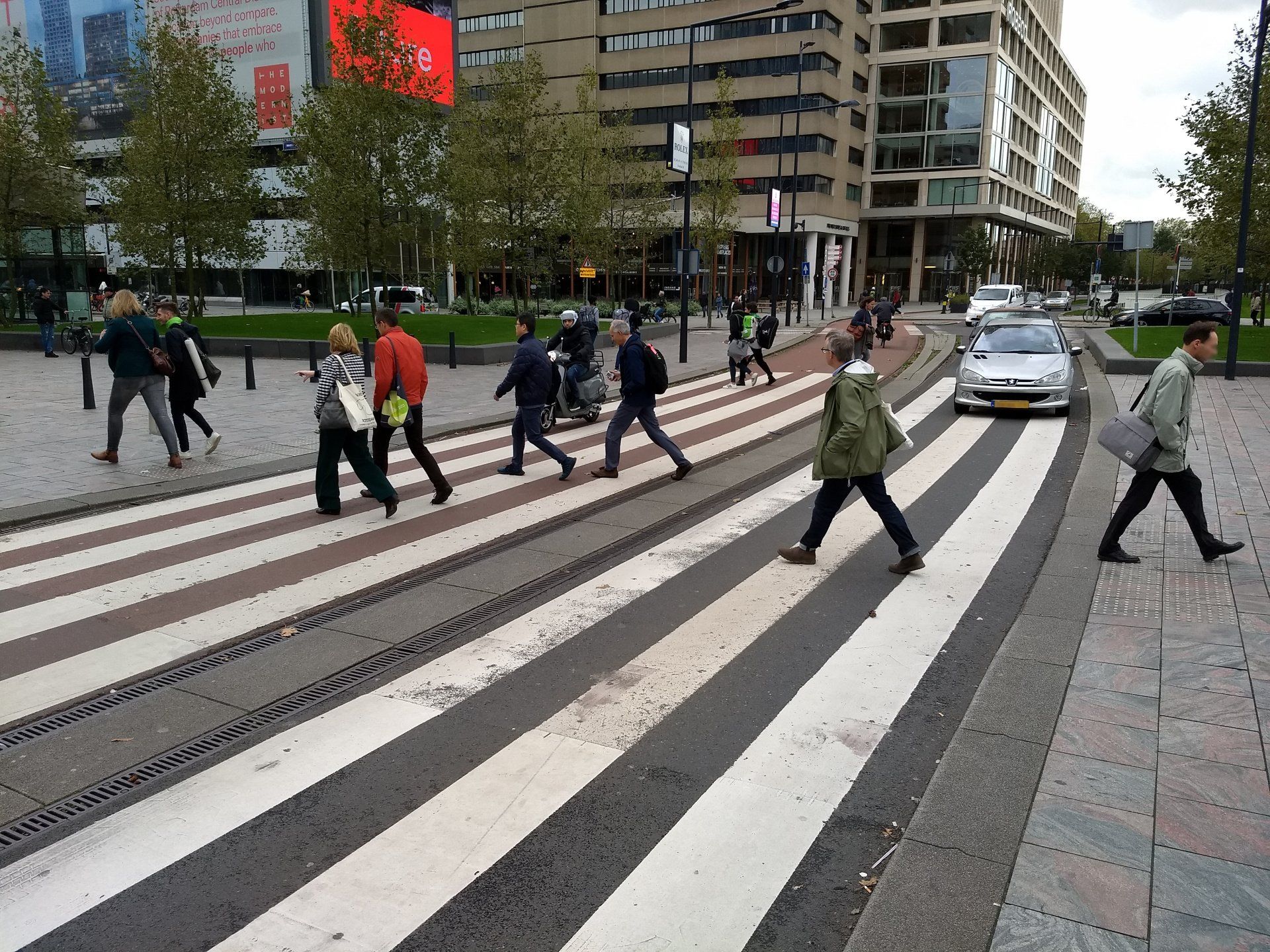 Rotterdam ist seit vielen Jahrzehnten Vorreiter bei der Infrastruktur für den Fußverkehr. In den 1950er Jahren wurde mit der Lijnbaan die weltweit erste autofreie Einkaufsstraße gebaut - und sie funktioniert bis heute. Der Hauptbahnhof Centraal Station wurde vor einigen Jahren vollständig neu errichtet - mitsamt einem großzügigen, weitläufigen und autofreien Vorplatz und dem breitesten Zebrastreifen, den wir jemals gesehen haben.